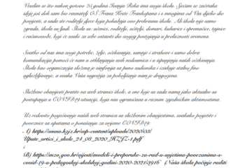 Zbog jesenskog odmora učenika nastave nema 2. i 3.11.2020. Nastava počinje 4.11.2020