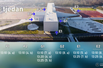 Učenici prvih, drugih i trećih razreda nastavu uvijek pohađaju ujutro. A TJEDAN 4. A ide na ulaz G1 u 7:50 4. B ide na ulaz G1 u 7:40 5. A ide na ulaz E1 u 7:40 5. B ide na ulaz G1 u 7:55 6. A ide na ulaz P1 Read more…