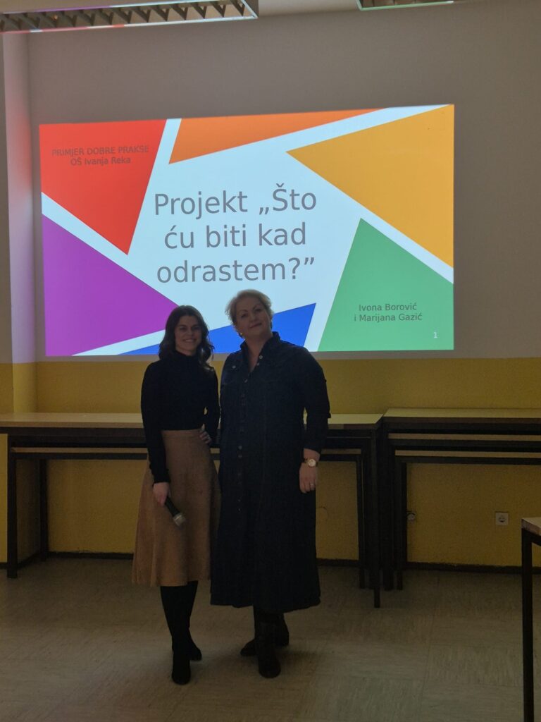 Na Županijskom stručnom vijeću učitelja razredne nastave, održanom 29. siječnja 2026. godine u Osnovnoj školi Sesvete, učiteljice Ivona Borović i Marijana Gazić predstavile su projekt naše škole „Što ću biti kad odrastem?“ kao primjer dobre prakse.