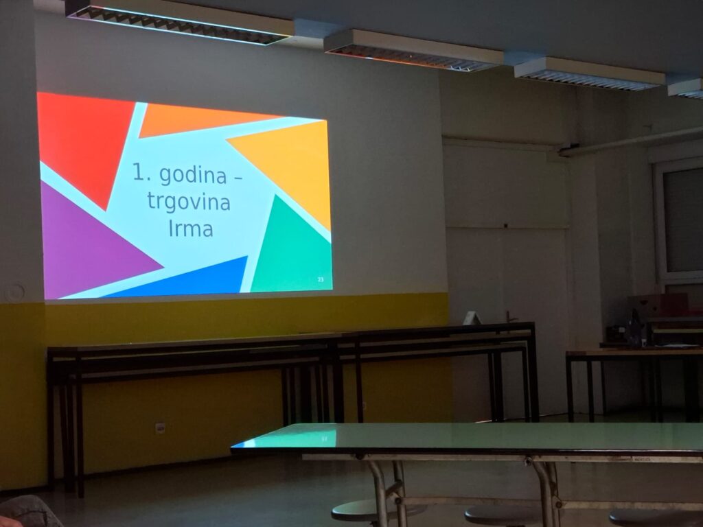 Projekt je prikazan kroz tri tematske cjeline uređene u prostoru škole: trgovinu, restoran i polikliniku.